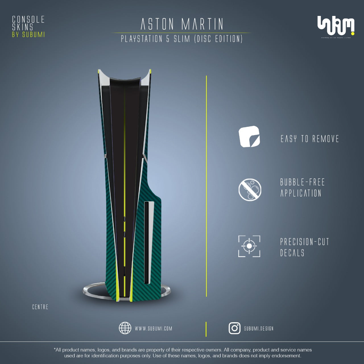 Capture the thrill of energy and performance with the Aston Martin console skin by SUBUMi, designed to energize your gaming setup.